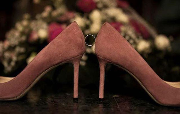 En una ceremonia tan magnífica no podían faltar grandes referentes del mundo nupcial. Amparo portó un vestido del diseñador alicantino Rubén Hernández con unas espectaculares flores pintadas a mano. Los zapatos, de Jimmy Choo, fueron un regalo de una amiga para la novia. El reportaje gráfico fue a cargo de Pepe Belenguer y los arreglos de peluquería y belleza pasaron por las manos de Marta Parra, especialista en novias y falleras.